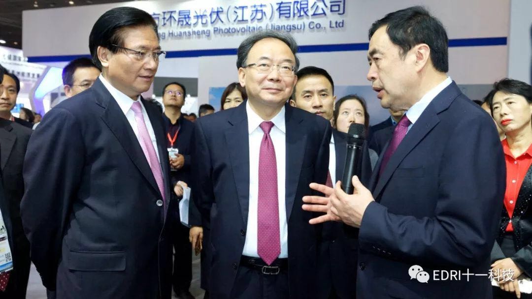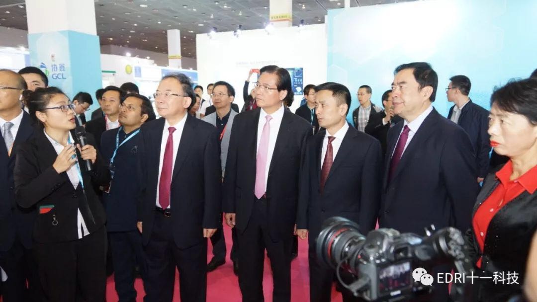 PA视讯董事长赵振元陪同市委、市政府领导参观了保利协鑫、远景能源、中环、远东集团、中设国联等参展商展台,了解各企业最新产品、技术等。