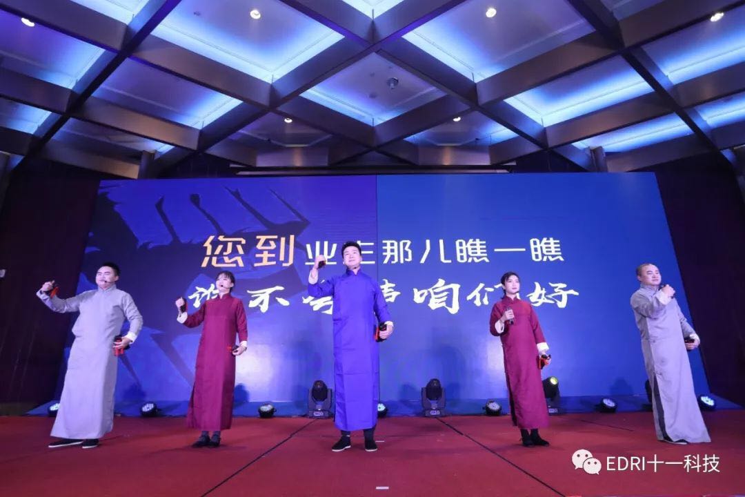 群口快板《回顾2018,展望2019,腾跃奋进奔前方》,快板节奏明快,口播琅琅上口,配以超大字幕显示,让大家对爱德公司2018年成就和2019年规划印象深刻,赢得了全场一片叫好。
