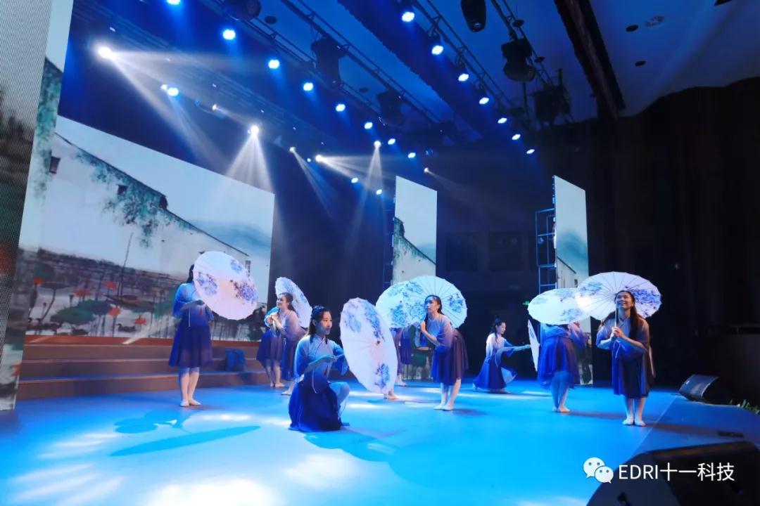 长袖善舞,古朴优雅。苏州分院的舞蹈《开在黎明》拨开历史黑夜,迎来耀眼曙光,且行,且吟。那是战火纷飞,军号嘹亮,奏响凯旋高歌;那是风轻雨斜,云蒸雾绕,杏花烟雨江南。集成电路设计的天地,大有可为,惟其艰难,更显勇毅;惟其磨砺,始得玉成。