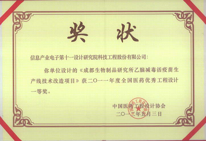 成都生研所乙脑疫苗2011全国医药一等奖